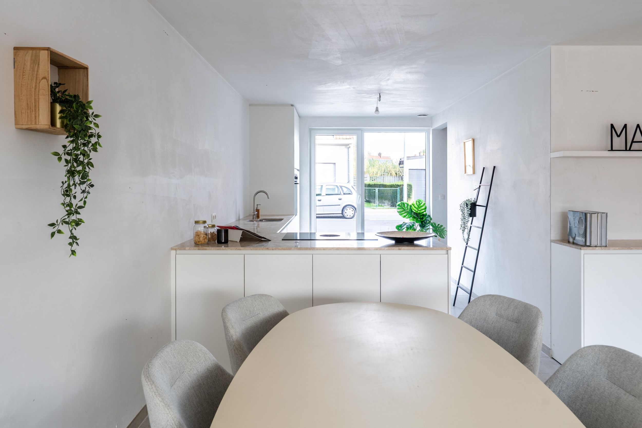 Bij het binnenkomen word je verwelkomd door een ruime, lichtrijke leefruimte met grote raampartijen die zorgen voor een aangename lichtinval. De volledig uitgeruste keuken sluit naadloos aan op de leefruimte en vormt het hart van de woning ideaal voor wie graag kookt en gasten ontvangt. Aansluitend vind je een ruime, praktische berging.